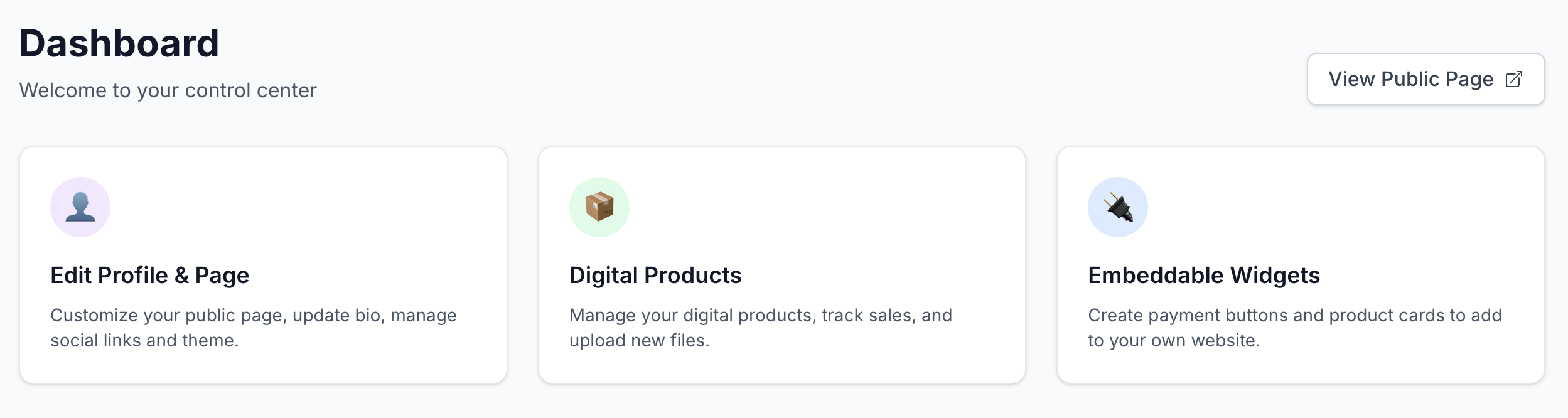 We've standardized the navigation experience. The new header includes a smart Wallet Menu that gives you quick access to copy your address, switch wallets, or jump between the dashboard and your public page.